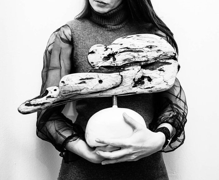 « . . . ce qui nous séduit dans ses travaux, tous d’une belle légèreté, c’est la subtilité avec laquelle l’artiste sait choisir et mettre en valeur les formes et les dimensions des éléments naturels : le bois, la pierre, la mousse, les cendres. »